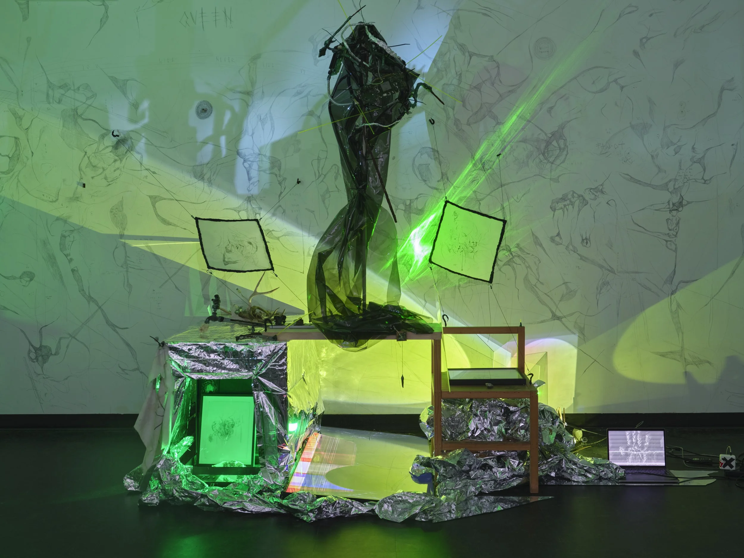 my teeth will gnaw right through your bones a throat is a window ghost screaming machine horror show of horror shows i can still hear you screaming, hello david queen you will never kill us all the world is already dead the world is dead long live the queens keep the vampires at the door scattered bones in the garden our bodies are just echoes of star bodies a million different people a million different worlds under the disco ball a million different world a glitch a glitch is a throat, a spell, a window my teeth rip right through a star is a body buried in a garden In the green